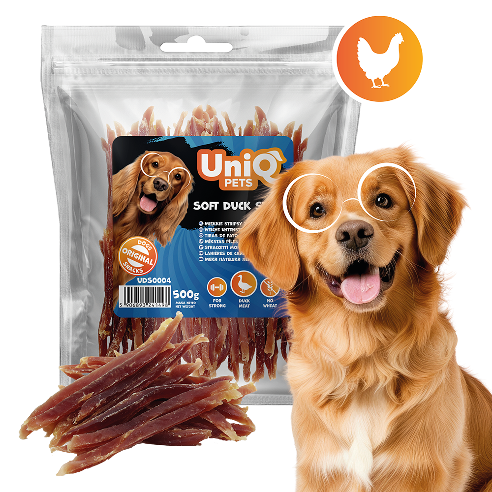 - UNIQ PETS – MEATY Przysmaki dla Psa Miękkie stripsy z kaczki | 500 g