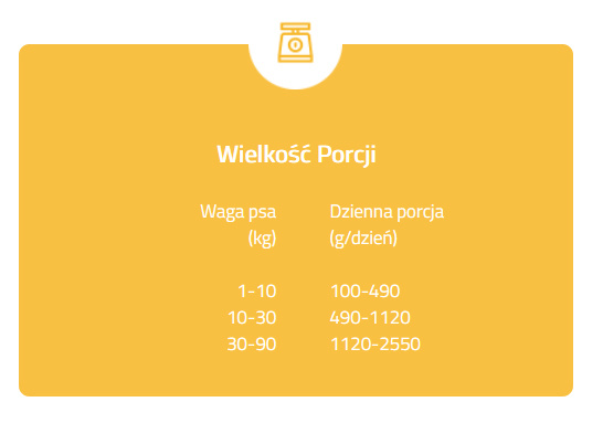 • dzienna dawka zależy od wieku, wielkości psa, stopnia jego aktywności i środowiska w którym przebywa