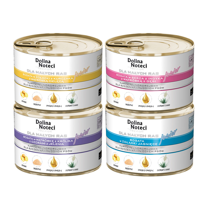 Dolina Noteci Premium Junior dla małych ras Mix smaków 12x185g