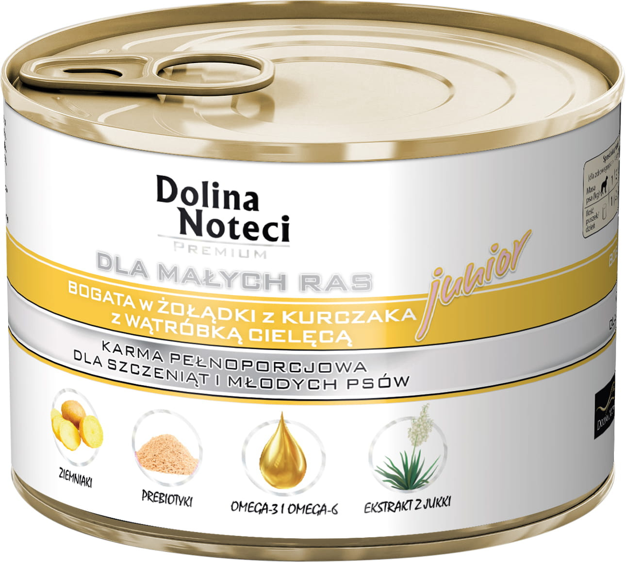 Dolina Noteci Premium Junior dla małych ras bogata w żołądki z kurczaka z wątróbką cielęcą