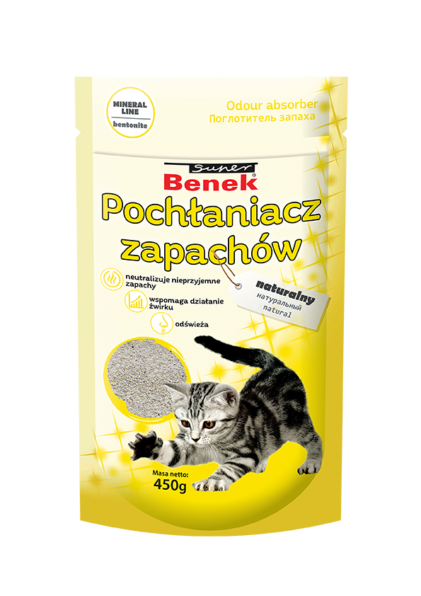 Super Benek Naturalny to pochłaniacz zapachów oparty na naturalnym, mineralnym surowcu. Skutecznie usuwa nieprzyjemne zapachy pojawiające się w kuwecie, jednocześnie wspomagając działanie żwirków higienicznych. Produkt jest neutralny dla zwierząt, dzięki czemu może być bezpiecznie stosowany na co dzień.