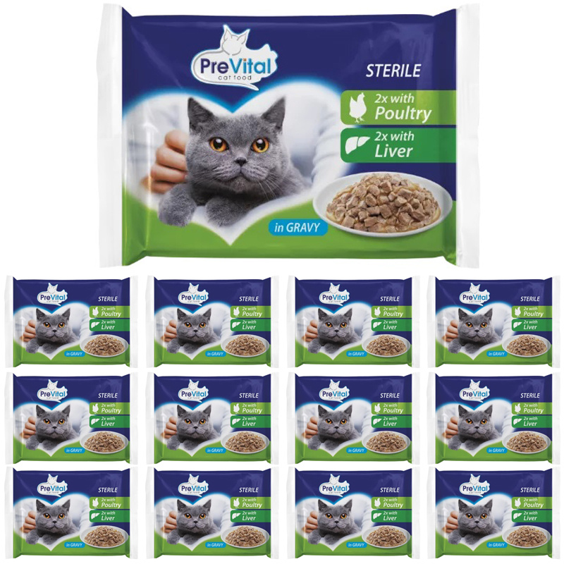 PreVital Sterile Drób i Wątróbka w sosie Mokra karma dla kota 52x100g