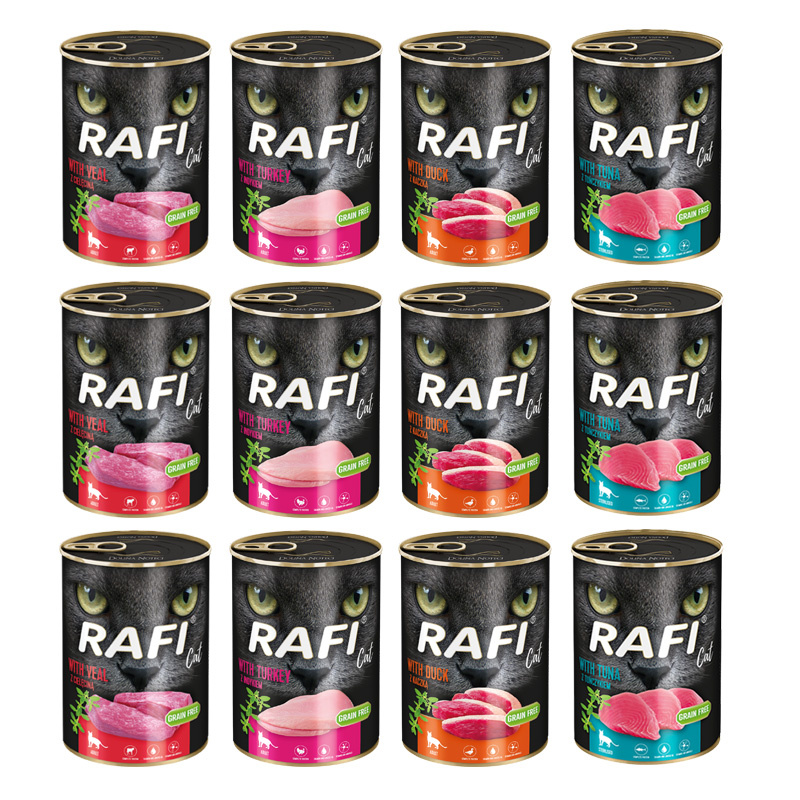 RAFI CAT bez zbóż MIX mokra karma dla kota 12x400g